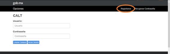 Ingresar al portal del Calt con la siguiente ruta http://calt.puertodeveracruz.com.mx/Calt/ desde el navegador de internet de su preferencia. El portal mostrará la interfaz de acceso al sitio, deberá introducir su usuario y la contraseña previamente registrado. En caso de que se desee agregar un nuevo usuario debe dar clic en registrarse como se muestra en la imagen 1.